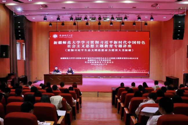 根据《yl6809永利官网学习贯彻习近平新时代中国特色社会主义思想主题教育理论学习工作方案》要求,为进一步引领广大青年学子深入学习贯彻习近平新时代中国特色社会主义思想主题教育工作会议精神,以扎实开展主题教育为契机,切实抓好青年的引导教育和党性锤炼,以党建带团建,在广大青年学子中掀起学习贯彻习近平新时代中国特色社会主义思想热潮,永利官网于5月17日特邀地理科学与旅游学院党委书记王勇辉教授为“胡杨先锋”班和“青年马克思主义者培养班”学员共200人开展题为《贯彻习近平生态文明思想,奋力建设大美新疆》的专题讲座,党委宣传部副部长孙宁主持讲座。