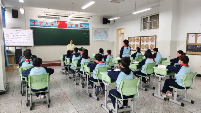 附属中学教师刘欢庆为研学学生上语文课
