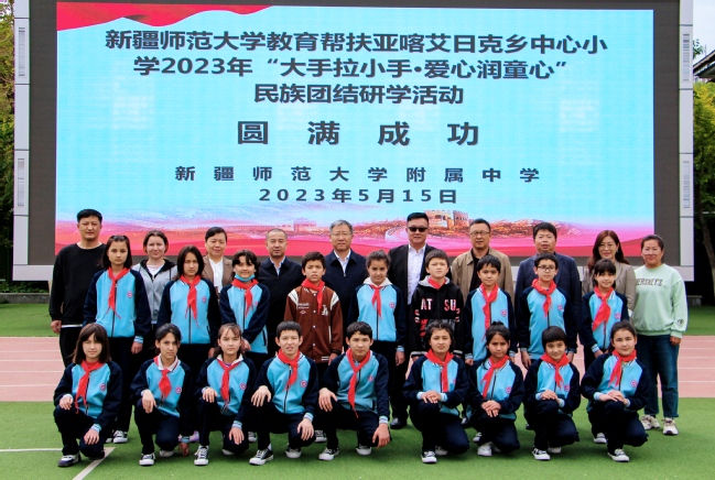 5月15日下午,永利官网2023年“大手拉小手·爱心润童心”民族团结研学活动圆满完成各项目标任务,顺利落下帷幕,来自莎车县亚喀艾日克乡中心小学六年级的20名师生结束了为期75天的学习生活。送行仪式在附属中学操场举行,校党委书记葛国出席仪式,为研学师生送上祝福。校党委常委、副校长陈彤,党委常委、组织部部长胡毅涛及附属中学党委书记吕志新,副书记、校长杨艳,副书记丁占军参加仪式。