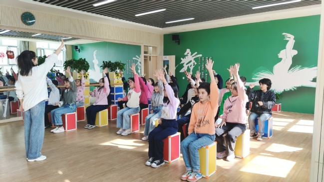 附属中学教师李荣为研学学生上音乐课