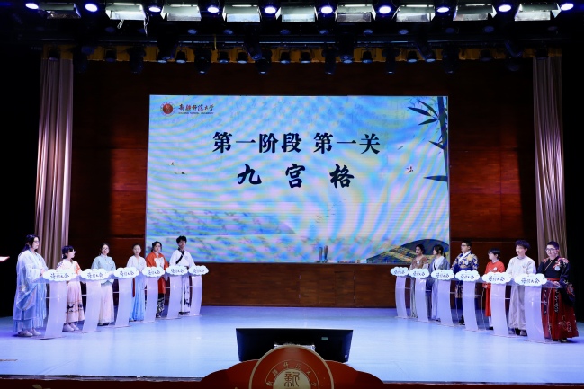 本次诗词大会分为院级比赛和校级比赛两个阶段。各学院开展了别开生面的院级比赛,共有60名选手进入校级复赛。通过校级复赛,最终有12名选手进入校级决赛。比赛中,选手们的敏捷才思和深厚诗词底蕴,令现场观众充分感受到诗词的无穷魅力,尽享诗词盛宴。经过单人追逐赛、飞花令和状元争夺赛三轮激烈角逐,最终中国语言文学学院肖晓晓获得状元,化学化工学院王逸舟获得榜眼,中国语言文学学院许静雯获得探花。