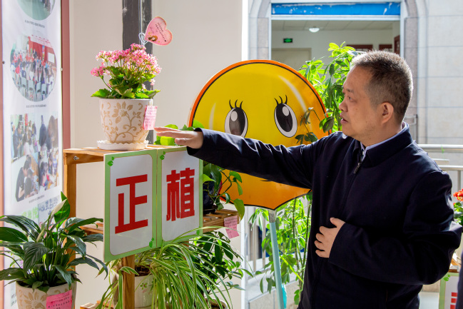 参观心理健康教育服务中心学生培育绿植