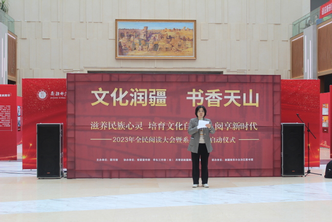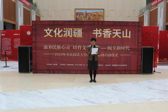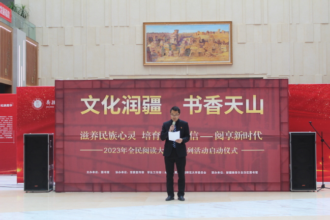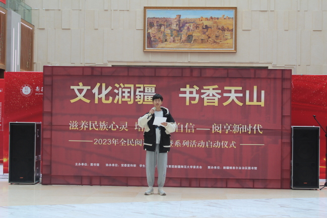 为全面贯彻落实党的二十大精神和首届全民阅读大会贺信等精神,充分发挥阵地作用,以优质的阅读服务满足学生日益增长的精神文化需求,营造爱读书、读好书、善读书的浓厚氛围,助推全疆全民阅读高质量发展,继续推进并促进全民阅读,4月23日上午,由图书馆主办,党委宣传部、学生工作部(处)、共青团yl6809永利官网委员会共同协办的“滋养民族心灵培育文化自信——阅享新时代”读书月系列活动启动仪式在温泉图书馆二楼大厅拉开帷幕。