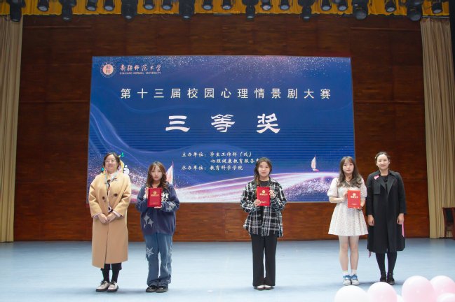 最终,马克思主义学院《第三次生命》获一等奖;生命科学学院的《你?她?我》和心理学院《小艾》获二等奖;历史与社会学院《破晓》、美术学院《my body to me》和体育学院《别急,花会开》获三等奖;物理与电子工程学院的《校园墙》、中国语言文学学院《拖延日记》、教育科学学院《美无定式》和政法学院《“贷”坏学生》获优秀奖。教育科学学院等10个学院获优秀组织单位。