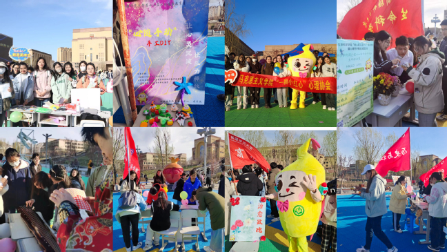 心理嘉年华活动中,各学院精心设计了28个现场活动。心理学院“幸福投射计划”“心晴忘忧板”“绘心一笑”,心理健康服务中心“祝福便利店”,教育科学学院“神笔马良”,马克思主义学院“海底捞月”“我心飞翔”,中国语言文学学院“笔尖的温度,心灵的色彩”,历史与社会学院“生活无take two”,生命科学学院“园艺健心”“爱的抱抱”,国际文化交流学院“找自己”“微笑交换”“踩走坏情绪”,美术学院“我是魔法师”“‘心育之旅,信传善意’交换心情盲盒”,物理与电子工程学院“不被定义的我们”“情绪派对王”,数学科学学院“再见烦恼”,计算机科学学院“解忧杂货铺”“戳破烦恼”,外国语学院“心仪百分百”,商学院“‘心随手动’手工DIY”,地理科学与旅游学院“心心相印幸福地”,体育学院“治愈玫瑰”,音乐学院“春风里·国朝邂逅”等,加强了各专业同学之间的交流,增进了感情,帮助大家在活动中减压,在体验中赋能。