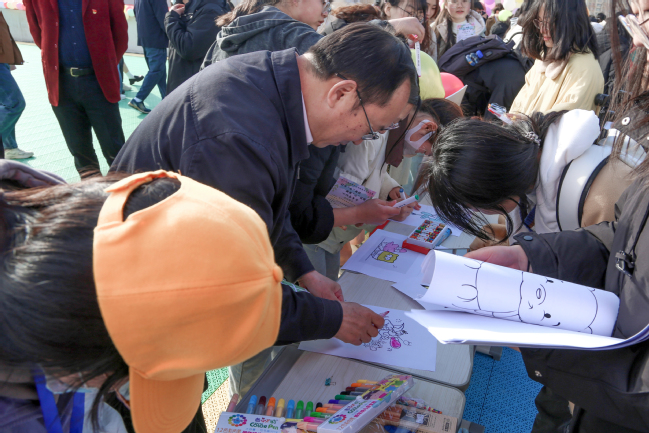活动开始前,参加活动师生纷纷聚集到签到墙,领取祝福嘉年华卡片。心理学院专业教师和部分学生带领全场师生做集体拍拍操,掀起活动热潮。