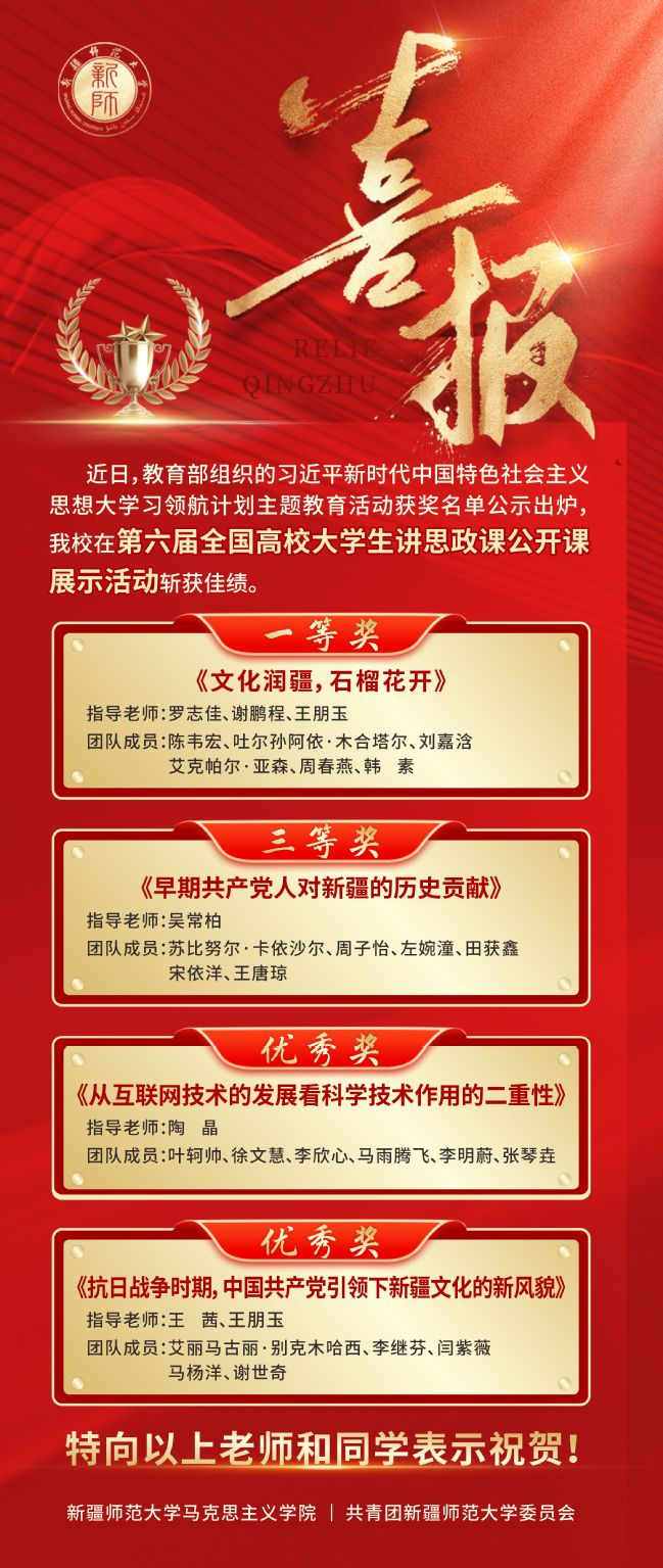 2022年5月活动启动以来,学校高度重视,紧紧依托由校团委和马克思主义学院共建的“yl6809永利官网青年思想政治教育实践创新平台”,充分发挥优势互补、资源共享特点,将学科优势与平台机制有效紧密结合。通过永利官网大学生红课宣讲团从各学院广泛选拔100名优秀学生,组成十支参赛队伍,由马克思主义学院选派优秀指导教师点对点进行指导,各参赛队伍在指导教师的悉心指导下,紧紧围绕思政课程中的有关章节或专题,结合新疆实际区情、历史文化、发展变化进行教学设计,引导大学生在自主讲述中深刻理解中国共产党为什么能、马克思主义为什么行、中国特色社会主义为什么好,让思政课真正做到“听进来”“讲出去”,深化学生群体对思政课教学内容的认识和思考。