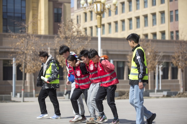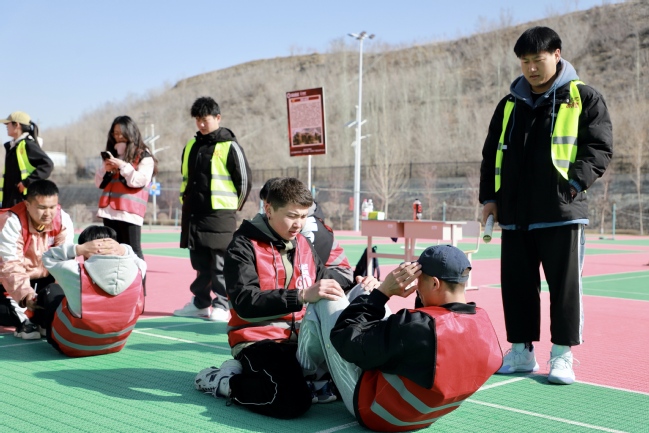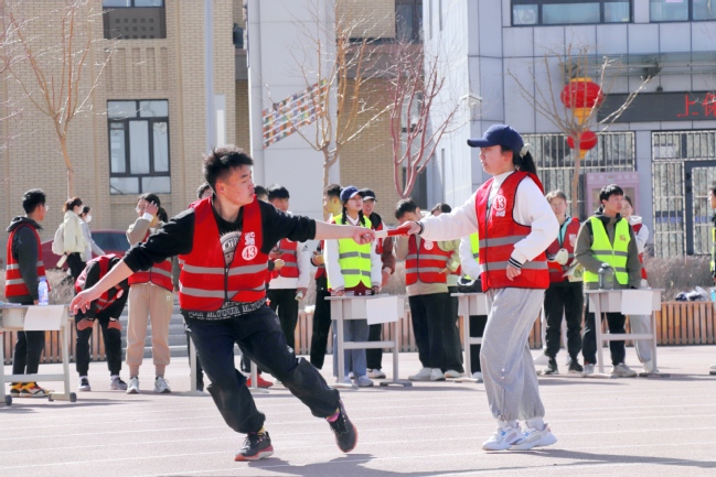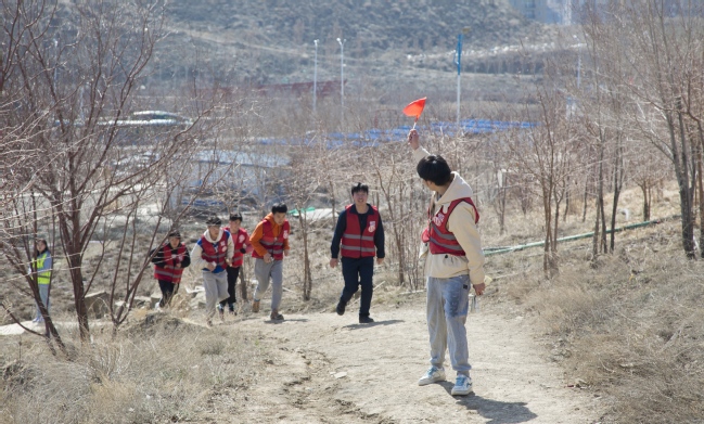 此次定向越野活动模拟长征路线,选取了长征中湘江战役、遵义会议、四渡赤水、巧渡金沙江、强渡大渡河、飞夺泸定桥、爬雪山、懋功会师等11个具有重要革命意义的地点作为越野赛关键打卡点,来自20个学院的400名参赛选手以4人为一小组共100组集结校园,通过徒步越野+通关打卡完成比赛。在两个多小时的活动中,100支小分队不仅要完成对应点位的党史知识问答,还要进行团队竞技任务。在“四渡赤水”处完成3×400m的接力奔跑,在“强渡大渡河”处配合颠球,在“过草地”处协力向前跑,最终在桃李山顶胜利会师。