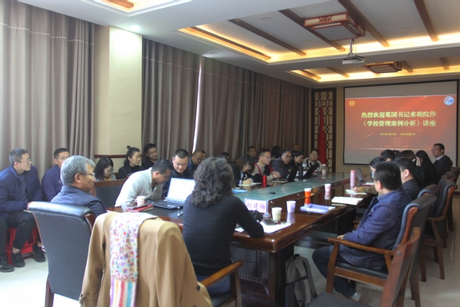 课堂上,葛国结合自身经历从“学校管理的本质”“学校管理重点”与“学校管理难点”三个部分,从学校领导与管理的核心“管事”“管人”结合办学定位和学科发展进行了系统阐述,并围绕校园环境建设、学科发展和软硬件建设等,列举案例,讲授了一堂生动深刻的教育管理课。最后,葛国指出要坚持因时因地制宜科学决策,实现学校管理工作水平上台阶。
