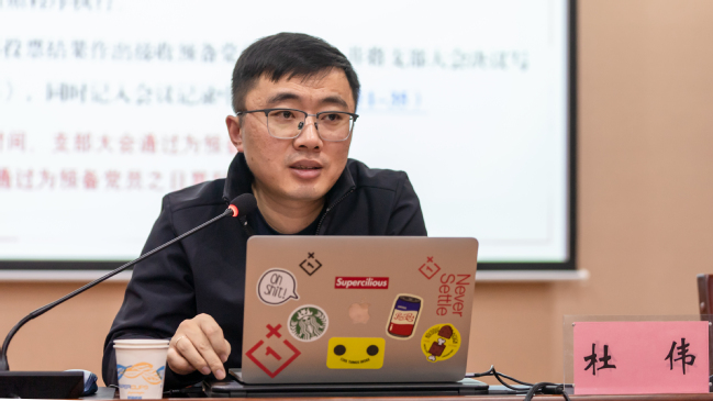 杜伟以《yl6809永利官网发展党员规程解读》围绕“申请入党”“入党积极分子的确定和培养教育”“发展对象的确定和考察”“预备党员的接收”“预备党员的教育、考察和转正”五个部分做了清晰的梳理。