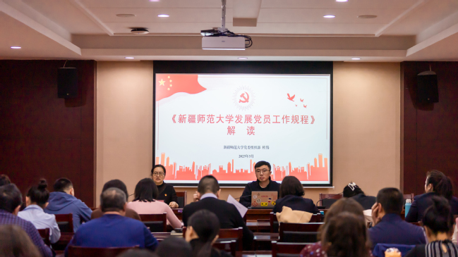 为进一步加强机关党委对各支部建设的领导,履行好机关党委从严治党主体责任,有效提升机关党务工作者的业务能力,3月29日下午,机关党委组织开展了以“踔厉奋发、勇毅前行,推动新时代学校机关党建高质量发展”为主题的第二期党务工作者培训班。机关党委所属22个党支部的47名党务工作者和新疆天山职业技术大学的3名党务工作者参加了培训。本次培训由校党委组织部综合科科长高丽倩、组织科副科长杜伟分别担任两场培训主讲人。机关党委书记张秀红在培训前介绍了两位主讲人的业务专长,强调了培训纪律要求。