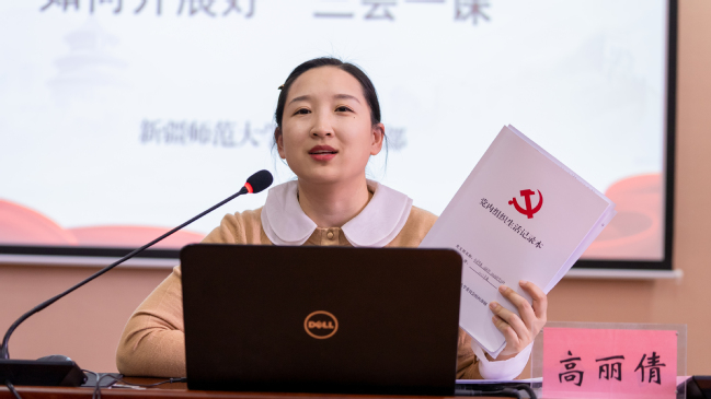 高丽倩以《如何组织开展“三会一课”》为题,全面、具体、细致地解读了“三会一课”的主要内容和工作要求,并结合实际对党的组织生活以及包含内容进行了介绍。