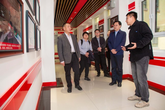 3月27日下午,为做好本科教学合格性评估相关工作,新疆理工学院党委常委、宣传部部长谭光明,党政办公室负责人马兴文等一行5人来永利官网就校园文化建设工作进行参观交流。校党委常委、宣传部部长高靖,党委办公室副主任、学校办公室副主任阿布都如·苏力,教务处副处长马嵘及宣传部、教务处相关科室干部陪同参观。