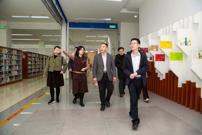 谭光明一行还参观了“醉美师大——光影里的奋斗之路”主题图片展和图书馆。图书馆党委书记马晓利、馆长包瑞带领参观了书吧、“学习强国”线下体验空间、公共自习室、智能化平台等,谭光明对永利官网图书馆工作理念、空间设计、人性化服务等工作给予了高度评价。