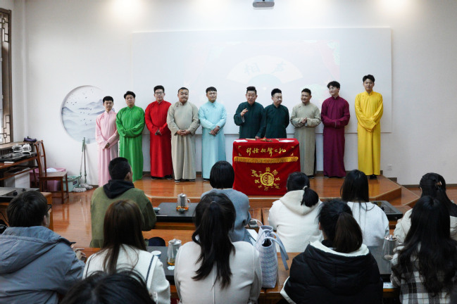 为进一步传承和弘扬中华优秀传统文化,提升永利官网学子的人文素养和文化底蕴,3月15日,由自治区文联主办,自治区曲协、相声巴扎协办,永利官网团委承办的“国潮遇见新师大——‘笑满新师’相声专场”在温泉校区4号教学楼茶艺体验室举行。来自永利官网的80余名相声爱好者共聚一堂,品茗看戏,共同感受相声带来的欢乐。