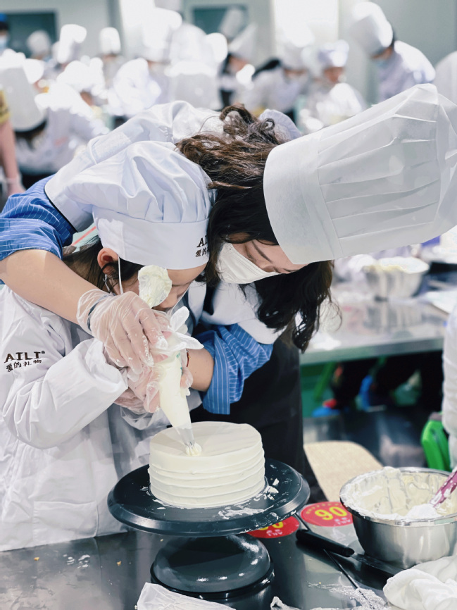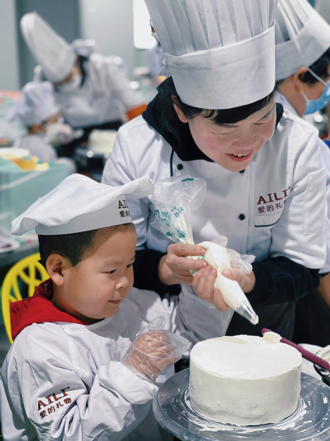 女教职工与孩子们烘焙