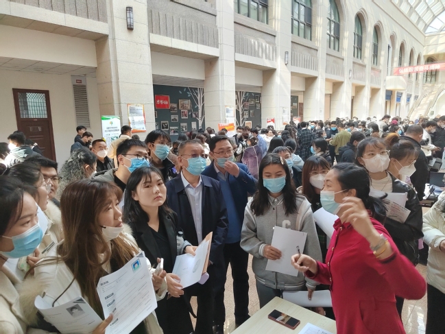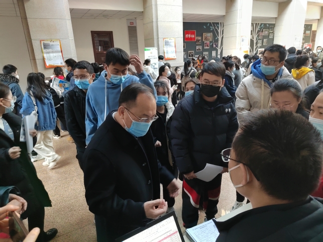 校党委副书记刘俊,校党委常委、宣传部部长高靖来到招聘会现场,与用人单位深入沟通,了解其招聘岗位需求,并与现场毕业生亲切交流,一一询问同学们的求职情况及求职意愿,并给予悉心指导和耐心解答。