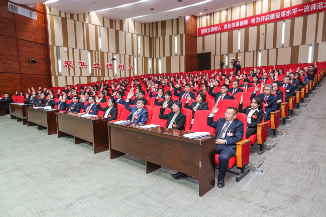 大会号召,全校各级党组织、全体党员和广大师生员工在新一届党委的领导下,要更加紧密地团结在以习近平同志为核心的党中央周围,忠诚捍卫“两个确立”,坚决做到“两个维护”,坚持以习近平新时代中国特色社会主义思想为指引,深入学习宣传贯彻党的二十大精神,弘扬伟大建党精神,不忘为党育人初心,牢记为国育才使命,落实立德树人根本任务,勇于直面困难和挑战,坚定不移走内涵式高质量发展道路,守正创新、踔厉奋发、务实工作,为建设高水平一流师范而不懈奋斗!