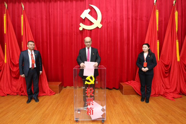 葛国同志代表新一届党委班子,对全体党代表、全校党员和师生员工的信任和支持表示感谢。他表示,有自治区党委、政府的坚强领导,有教育工委、教育厅的正确指导,有领导班子成员的团结协作,有广大党员和师生员工的大力支持,新一届领导班子一定会推动学校各项事业取得更大成绩。作为新一届党委书记,将凝心聚力抓工作,坚定信念、全力以赴,与班子成员一道,推动学校党的建设和事业发展迈出新的步伐。