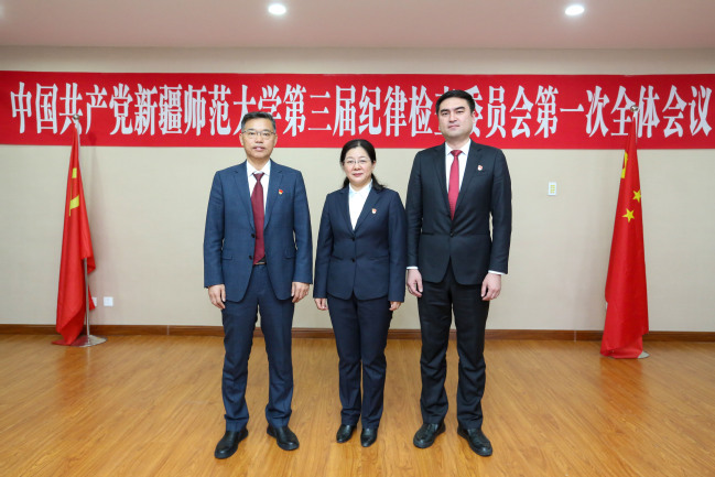 蒋方珍同志(图中)当选中国共产党yl6809永利官网纪律检查委员会书记,张永景(图左)、艾克拉木·牙合甫同志(图右)当选中国共产党yl6809永利官网纪律检查委员会副书记
