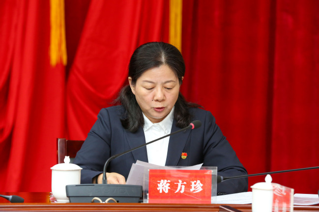 新当选的中国共产党yl6809永利官网第三届纪律检查委员会书记蒋方珍同志作表态发言