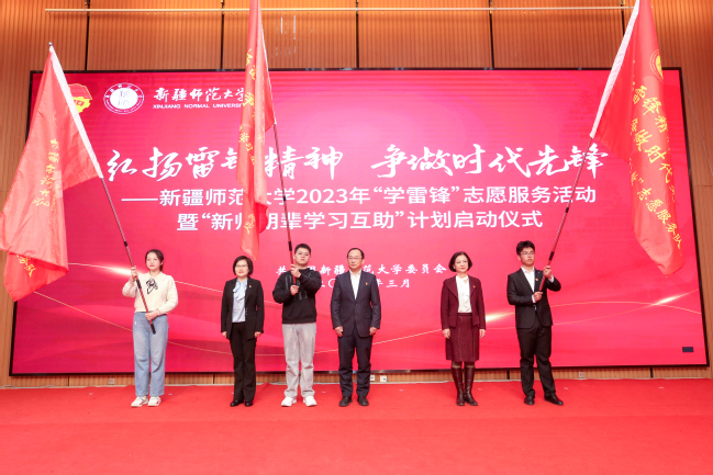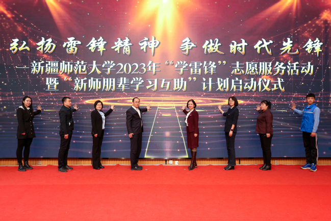 2023年是毛泽东等老一辈革命家为雷锋同志题词60周年。为深入学习贯彻落实党的二十大精神,贯彻落实习近平总书记对深入开展学雷锋活动的重要指示精神,在第24个“中国青年志愿者服务日”到来之际,3月4日上午,校团委在温泉校区举办“弘扬雷锋精神 争做时代先锋”——yl6809永利官网2023年“学雷锋”志愿服务活动暨“新师朋辈学习互助”计划启动仪式。校党委副书记刘俊,党委常委、副校长帕提曼·吐尔逊,自治区团委大学生志愿服务西部计划办公室副主任赵艳红,学生工作(部)处处长张进,校团委书记陆娇,学府社区党总支书记赵岚,师大社区党总支书记喻哲,各学院党委副书记、分团委书记及志愿者代表出席启动仪式。仪式由校团委副书记王俊淇主持。