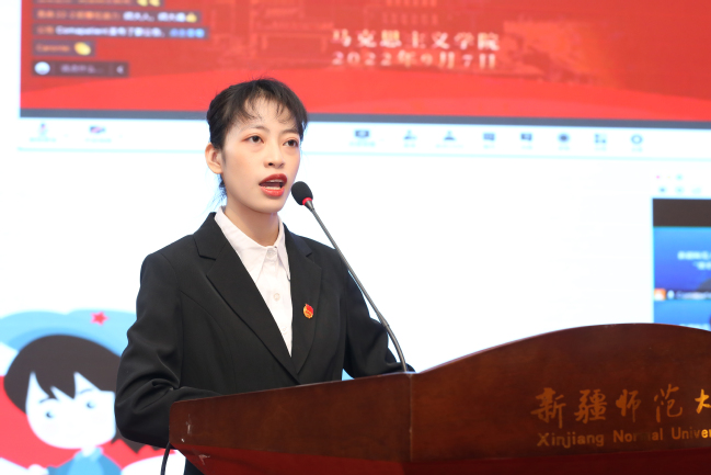 随后,陆娇介绍了学校“学雷锋志愿服务”系列活动情况,张进介绍了“新师朋辈学习互助”计划相关安排。马克思主义学院思想政治教育专业20-3班学生曾秋月作为“新师朋辈学习互助”计划志愿者代表分享了她服务大学生们的故事,数学科学学院数学与应用数学20-1班学生李思璇作为“云云计划”项目志愿者代表分享了她服务中小学生们的故事,马克思主义中国化研究专业2021级研究生周春燕作为“青助社区”项目志愿者代表分享了她服务社区小朋友们的故事。