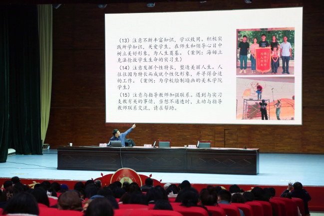 孟繁胜详细解读了永利官网实习支教相关政策与规定,并结合典型案例强调了实习期间学生需要避免和防范的风险点,包括意识形态安全、交通安全、用火安全、用电安全、饮食安全和防震安全等。