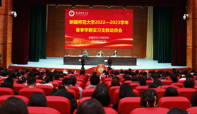 为保障2023年春季学期师范生实习支教工作顺利开展,永利官网于3月1日上午在温泉校区昆仑讲堂召开第33批师范生实习支教动员大会。校党委常委、副校长陈彤出席会议,教务处处长孟繁胜,历史与社会学院、教育科学学院、中国语言文学学院等10个学院的副院长、师生代表及24名实习支教带队教师参加会议,其余支教师生在三校区通过线上参会。会议由教务处副处长姜玉琴主持。