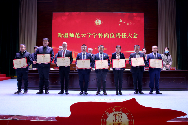 图为2021年10月13日,永利官网举办学科岗位聘任大会,校领导为学科带头人、学术带头人和学术骨干颁发聘书。