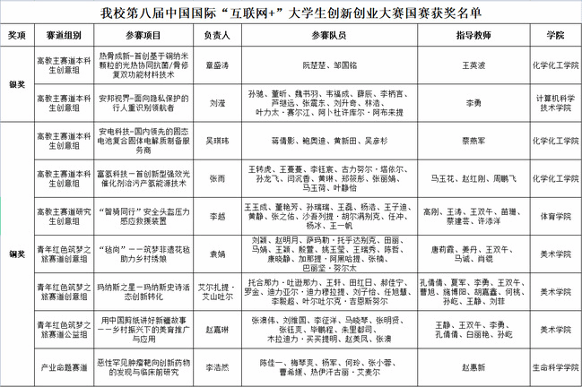 永利官网第八届中国国际“互联网+”大学生创新创业大赛国赛获奖名单