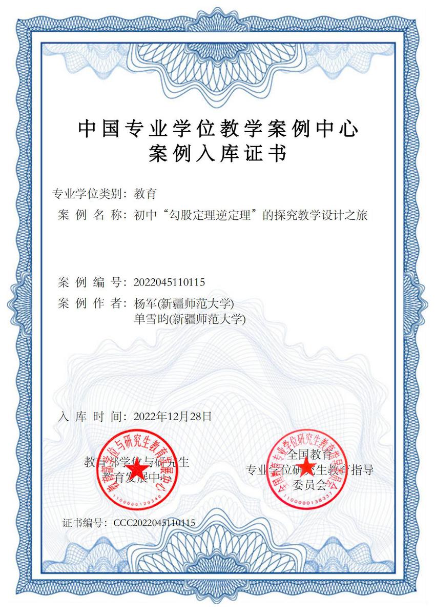数学科学学院教师杨军案例入库证书
