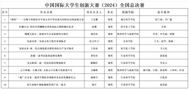中国国际大学生创新大赛(2024)全国总决赛获奖信息
