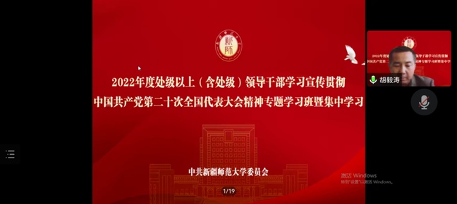 胡毅涛强调,党的二十大是在全党全国各族人民迈上全面建设社会主义现代化国家新征程、向第二个百年奋斗目标进军的关键时刻召开的一次十分重要的大会,是一次高举旗帜、凝聚力量、团结奋进的大会。学习宣传贯彻党的二十大精神是当前和今后一个时期全校的首要政治任务,动员全校师生更加紧密地团结在以习近平同志为核心的党中央周围,高举中国特色社会主义伟大旗帜,坚定道路自信、理论自信、制度自信、文化自信,全面贯彻党的教育方针,落实立德树人根本任务,办好人民满意的教育,为全面建设社会主义现代化国家、全面推进中华民族伟大复兴而团结奋斗,具有重大现实意义和深远历史意义。