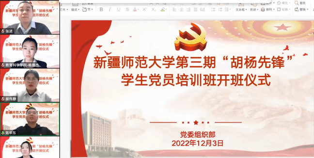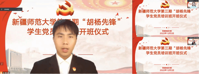 为深入学习贯彻习近平新时代中国特色社会主义思想,贯彻落实新时代高校党建工作总要求,12月3日上午,校党委组织部举行了第三期“胡杨先锋”学生党员培训班开班仪式。党委常委、组织部部长胡毅涛出席会议并讲话。研究生处处长周珊、学生工作(部)处处长张进、历史与社会学院副院长王建华、实验室与设备管理处副处长陈华东、组织部相关同志以及38名学生党员参加会议。实验室与设备管理处副处长陈华东主持会议。