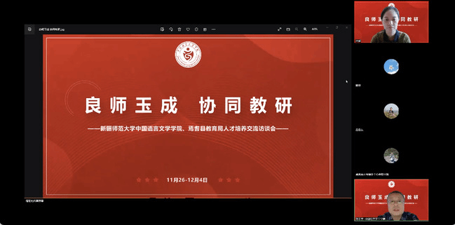 为助力新疆各地州语文教育因地制宜,继承学校引领全疆中小学语文教育发展的优良传统,抓住国家打造大国良师的机遇,永利官网中国语言文学学院探索U-G-S(师范大学、地方政府、中小学校三方合作的教师教育模式)模式在新疆的本土化之路,形成大学-政府-中小学长效稳定、协调发展、面向未来、合作共赢的创新发展机制,11月26日至27日,与乌鲁木齐市教育局、乌鲁木齐市教研中心、焉耆县教科局以及30余所中学,通过腾讯会议开展“良师玉成、协同教研”主题活动。中国语言文学学院院长刘宏宇教授出席并致辞,市县教育行政部门和各中学领导出席会议。近300名行业专家、语文教研员、一线语文教师参加了此次活动。