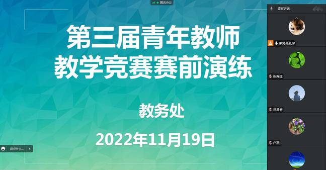 11月19日,教务处处长孟繁胜、副处长马嵘、专家组6人和8名参赛教师齐聚腾讯会议进行赛前大演练。参赛教师进行了20分钟线上教学,专家组结合评分标准现场反馈并提出修改意见。每节课后,大家畅所欲言,专家组对参赛教师们课堂中的闪光点提出肯定和赞赏,也对课堂教学中存在的问题提出了合理的改进建议,从设计理念的高度、课堂实践的广度、教学设计的深度激励参赛教师继续奋发,让参赛教师深刻认识到教育教学之路任重而道远。接下来,专家组将继续帮助参赛教师优化课堂教学细节问题,对课堂教学和相关材料的每个环节精雕细琢,为自治区比赛做足准备。