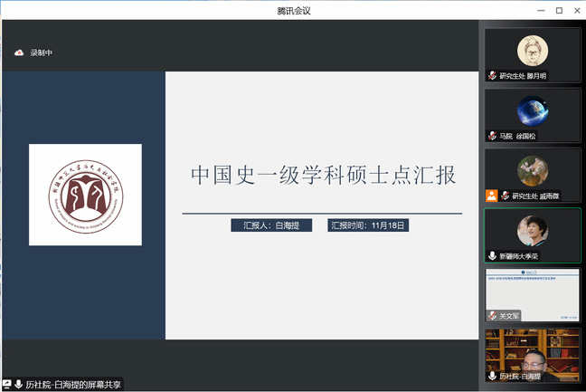 马克思主义理论一级学科博士点、中国史一级学科硕士点、美术学一级学科硕士点、物理学一级学科硕士点、翻译专业学位点代表学校本轮所有参评学位点就2022年周期性合格评估系统中数据填报情况、学位点建设中存在的问题和拟解决的措施进行了汇报。研究生处结合全校所有参评学位点的填报情况分析了各学位点存在的共性问题,并针对后期工作提出了针对性建议。