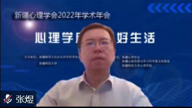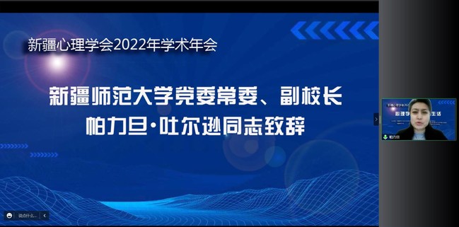 校党委常委、副校长帕力旦·吐尔逊到会并致辞,对新疆心理学会2022年学术年会顺利举办表达了祝贺,向出席本次会议的专家和参会师生表示热烈欢迎和衷心感谢。期望通过举办此次心理学会学术年会,为广大心理学研究者、工作者们营造更加浓厚的学术氛围,聚焦民众对心理健康的迫切需要,在交流中碰撞思想的火花,产出新颖的观点,形成可行的方案,为新疆心理健康及社会心理服务工作做出更大贡献。