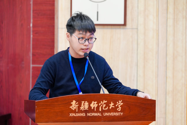 新疆分营营员代表王维康同学发言,他在发言中表示,对于此次冬令营新疆分营充满了期待,他希望通过此次冬令营活动,能够亲身感受最真实、最美丽的新疆。
