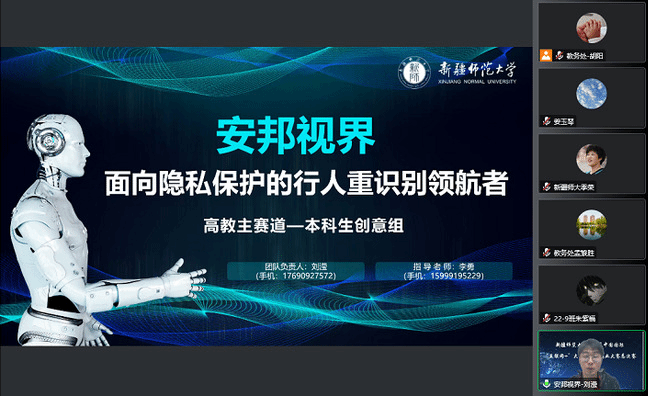 进入本届大赛总决赛现场赛的学生负责人刘滢、阮楚楚对所负责的项目“安邦视界——面向隐私保护的行人重识别领航者”和“热骨成新——首创基于铜纳米颗粒的光热协同抗菌/骨修复双功能材料技术”以路演的形式进行了汇报。化学化工学院王英波教授、计算机科学技术学院李勇副教授作为入围项目指导教师相继做了表态发言,表示将继续按照学校党委指示,拿出饱满的精神,带领学生做好项目的进一步打磨和优化,争取在总决赛中取得更好成绩。