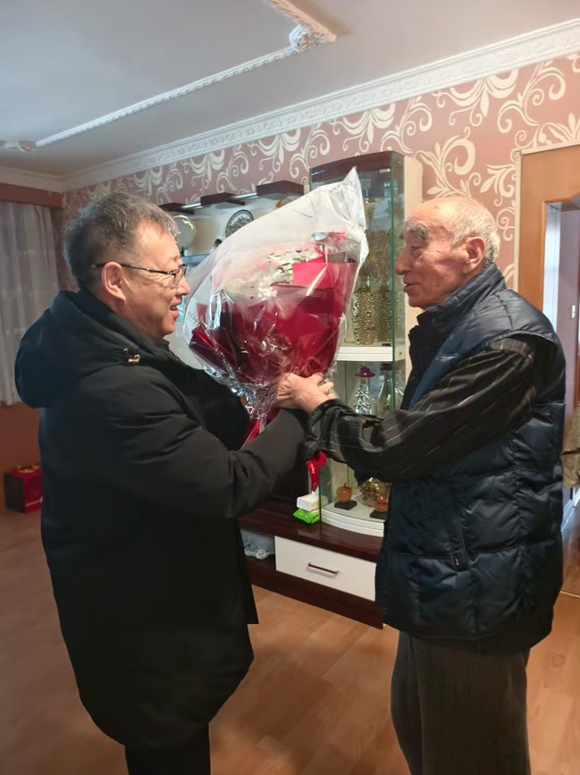 冬日暖阳,温情满溢。在原校党委书记张海峰的家中,校党委书记葛国与张海峰亲切握手,两人促膝而谈。葛国详细介绍了过去一年里学校在改革发展和稳定方面所取得的显著成就,亲切询问张海峰的生活情况。在得知张海峰身体状况良好后,葛国对随行的工作人员就老同志的服务管理、医疗保障等工作提出具体要求,并向老同志送上鲜花和慰问品。张海峰表示,看到学校发展得越来越好,打心眼里高兴,只要学校有需要将尽己所能发挥作用。在原校长阿不力克木·阿吉和老教授阿不力孜·木沙家中,葛国与他们亲切交流,倾听他们对学校发展的建议,现场气氛温馨而热烈。