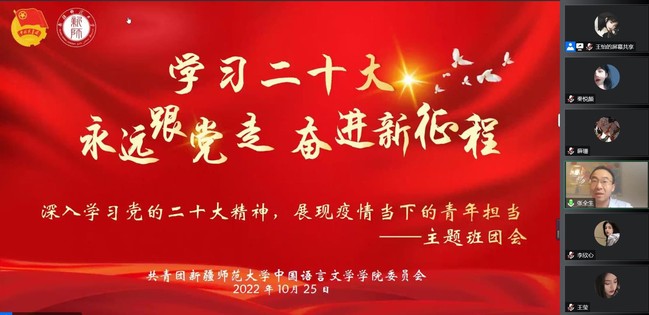 全校各班级团支部开展“深入学习党的二十大精神,展现疫情当下的青年担当”主题班团会