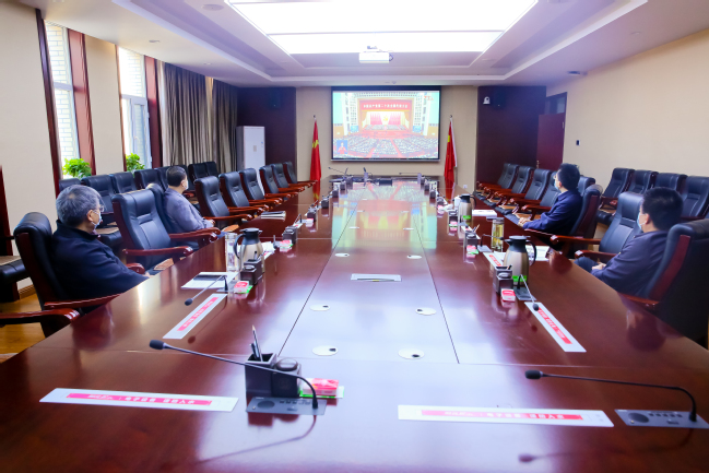 全体在家校领导在温泉校区行政楼424会议室集中收看党的二十大开幕盛况