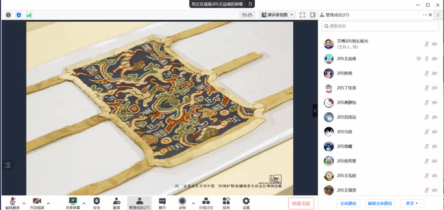 本次汇报要求每个会场提前遴选出1名第一人称文物“演绎员”、1名博物馆“讲解员”、1名非遗文化“推荐官”、1名传统服饰“形象大使”开展文化体验汇报。在汇报会中,西周青铜容器利簋、东汉青铜器马超龙雀、清朝宫廷玉器大禹治水图玉山等文物在学生第一人称“演绎”中生动呈现;学生博物馆“讲解员”讲述新疆维吾尔自治区博物馆、安徽楚文化博物馆等文化历史博物馆建馆的历史和意义;各学院学生非遗文化“推荐官”讲述十二木卡姆、剪纸、皮影戏、油纸伞、秦腔、京剧等非物质文化遗产的发展现状、保护管理和科学研究;古代服饰学生“形象大使”讲述了不同朝代中国的服饰特点和变迁。