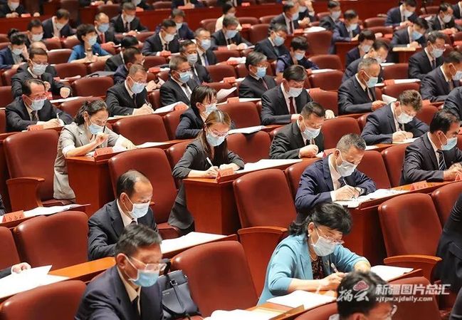 9月9日,与会人员在认真听取自治区党委书记马兴瑞受自治区党委常委会委托作的工作报告。石榴云/新疆日报记者 崔志坚摄