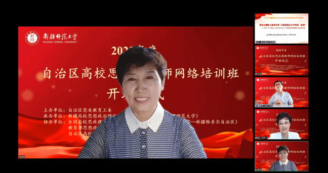 为落实自治区高校党建和思政工作座谈会会议精神,进一步加强思政课教师队伍建设,持续提升自治区高校思政课教师特别是青年思政课教师专业化、职业化水平,8月10日,由自治区党委教育工委主办,新疆高校思想政治理论课改革创新研究中心(yl6809永利官网)承办,全国高校思政课“手拉手”集体备课中心(yl6809永利官网)、教育部思想政治理论课程虚拟教研室(yl6809永利官网)、自治区高校思想政治理论课孙秀玲名师工作室协办,新疆世纪超星信息科技有限公司提供技术支持的2022年自治区高校思政课教师网络培训班在永利官网隆重开班。全疆47所高校的400余名马克思主义学院领导班子成员和思政课骨干教师相聚“云端”,共享学术盛宴。
