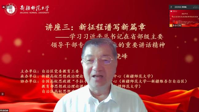 讲座还邀请了天津大学马克思主义学院院长、中国马克思主义哲学史学会“21世纪马克思主义研究分会”副会长颜晓峰教授,清华大学习近平新时代中国特色社会主义思想研究院副院长肖贵清教授,北京师范大学中共党史党建研究院院长、马克思主义学院王炳林教授,yl6809永利官网党委常委、副校长、马克思主义学院院长孙秀玲教授等国内知名专家。专家教授分主题理论结合案例,从不同角度解读,完整准确贯彻新时代党的治疆方略、追寻以伟大建党精神为源头的中国共产党精神谱系融入高校思政课的理论和实践逻辑,学习领会习近平总书记治国理政精髓。