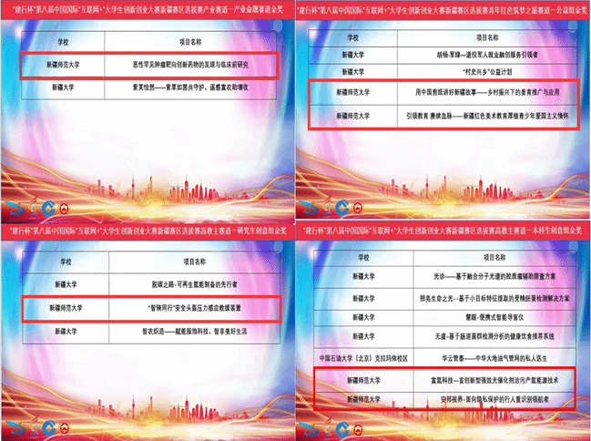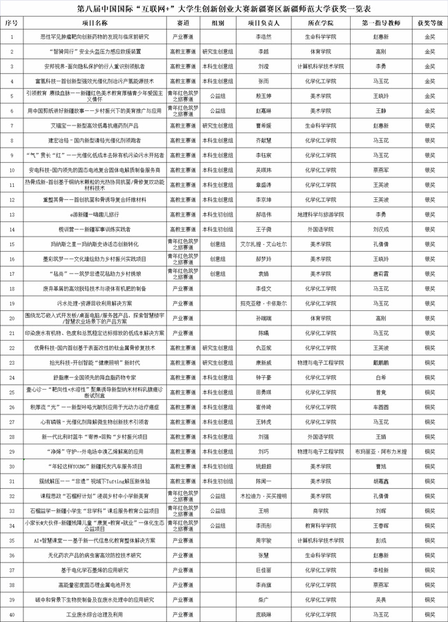 第八届中国国际“互联网+”大学生创新创业大赛新疆赛区永利官网获奖情况