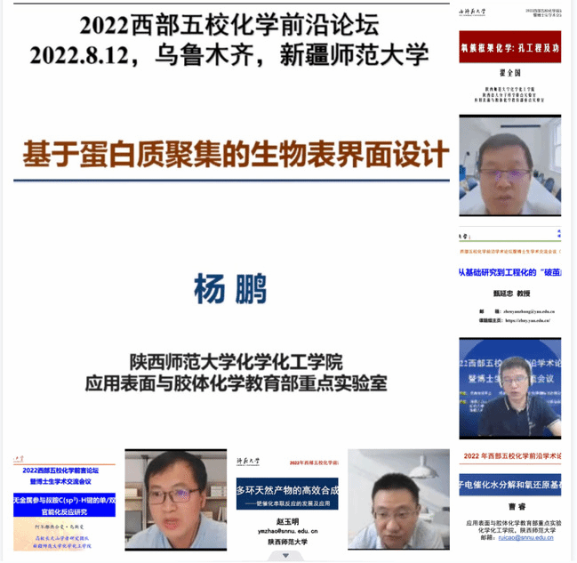 为进一步推动我国西部高校化学相关学科的科学研究与科研合作,进一步提高西部高校博士研究生培养质量和水平,更好发挥西部地区高校在丝绸之路核心区建设的重要科技支撑作用,8月11至15日,由陕西省化学会主办、永利官网承办的2022西部五校化学前沿学术论坛暨博士生学术交流会议在线上召开。来自yl6809永利官网、延安大学、新疆大学、陕西师范大学、遵义医科大学等五所高校的11位化学前沿学科专家教授、12位博士研究生、300多位师生参加了本次学术交流会。